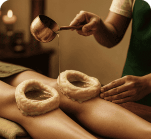 Janu Vasti involves retaining warm medicated oil on the knee joint for a specific duration. This therapy helps to lubricate the knee joint, Reduce inflammation and alleviate pain associated with knee joint conditions such as Osteoarthritis, Rheumatoid Arthritis and Knee Injuries.